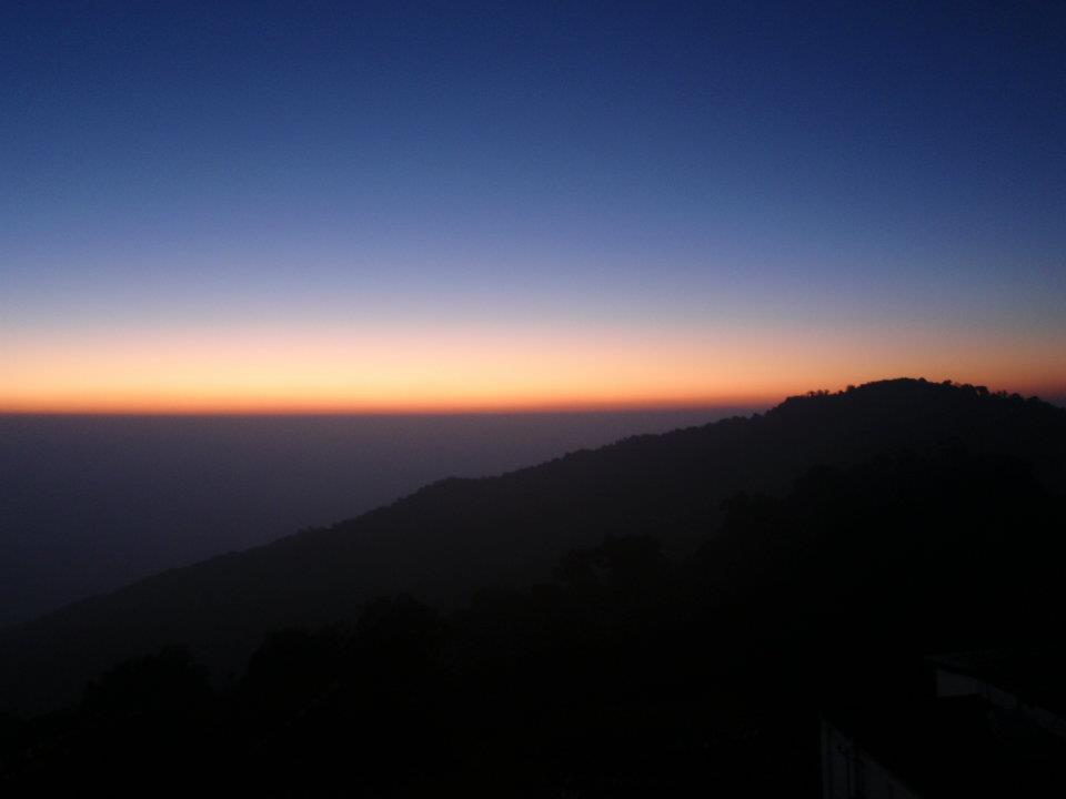 At the top of Tiger Hill is a building with floor to ceiling windows on three sides which offers protection from the bitter pre-dawn cold. On arrival it was packed and a bit chaotic as people jostled to get the best position for the sight before being brave enough to head outside to feel the new morning sun on their faces, which was still a good hour or so away.