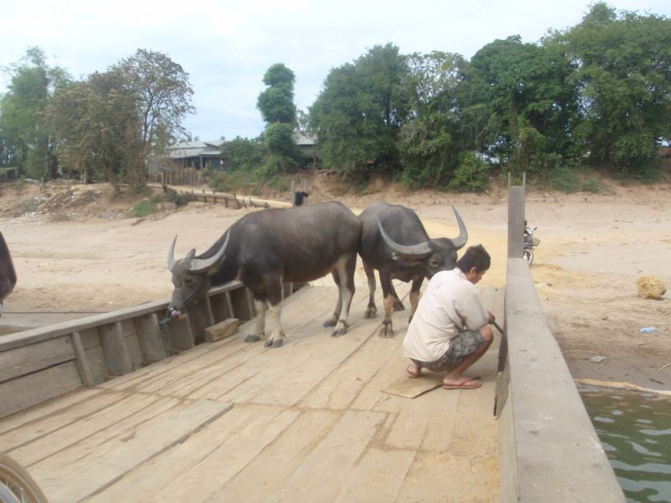 We made an early start from the hotel and one of the first legs of the journey was to cross the river on a giant, motorised raft. Passenger-wise there was me, my guide, his motorbike plus two huge male buffaloes and their farmer. Mid-way across, both beasts managed to slip out of their shackles and proceeded to charge around the tiny space before falling into the water and swimming off into the sunrise.
